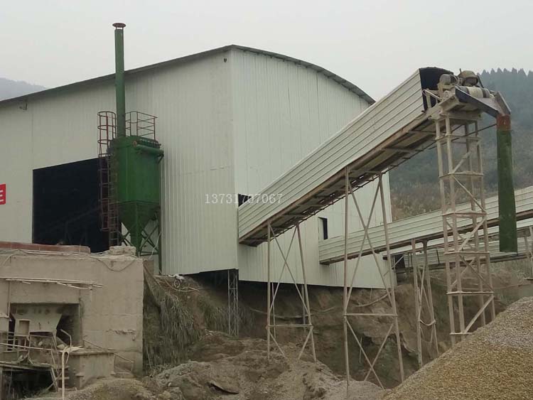 皮帶運輸密閉布置,皮帶和落料點分別布置吸塵口,使用一臺15KW120型布袋除塵器進行處理。
