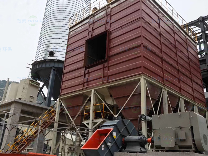 1、1050t/d石灰石自動混燒立窯脈沖布袋除塵系統,使用安裝位置:1050t/d石灰石自動混燒立窯南側場地。