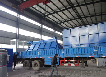 浙江寧波北倫電廠粉煤灰處理用PPC96-8布袋除塵器運(yùn)抵現(xiàn)場,正在卸車。