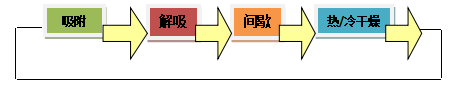 脫附過程結束后,吸附器內的溫度很高,通過間歇過程可使吸附器放空降溫,以及通過調節間歇時間來調整總的吸附時間。